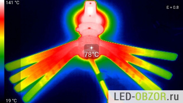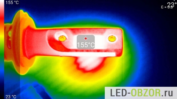 Система охлаждения получилась очень эффективная для такой высокой мощности. Нагрев светодиодов получился всего 138°. Это самый низкий показатель среди 78 протестированных мной комплектов светодиодных автомобильных ламп.
