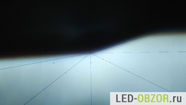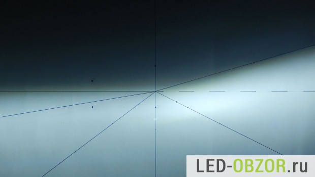 Распределение света как у галогена. Светотеневая граница такая же чёткая, засветок нет. Результат максимально хороший, встречается ещё только у 2 моделей автомобильных лампочек.