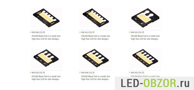 Светодиоды использованы специализированные OSLON Black Flat, предназначенные для ближнего и дальнего света автомобиля. Отличаются количеством диодов в сборке. При нагреве кристалла до 130° будет от 400 до 540 люмен на 1 сборку.