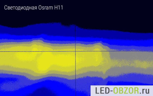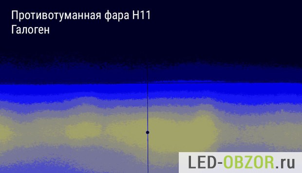 Как мы видим по фото и изображению светораспределения, освещенность в центре у Осрам Н11 выше на 5% по сравнению с галогеновым источником. А вот ослепление у Osram выше почти в 3 раза, обязательно требуется регулировка угла наклона противотуманок.