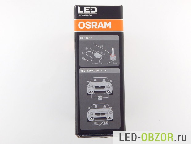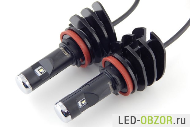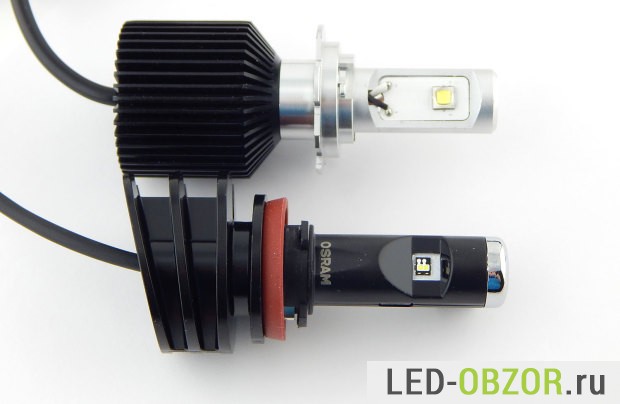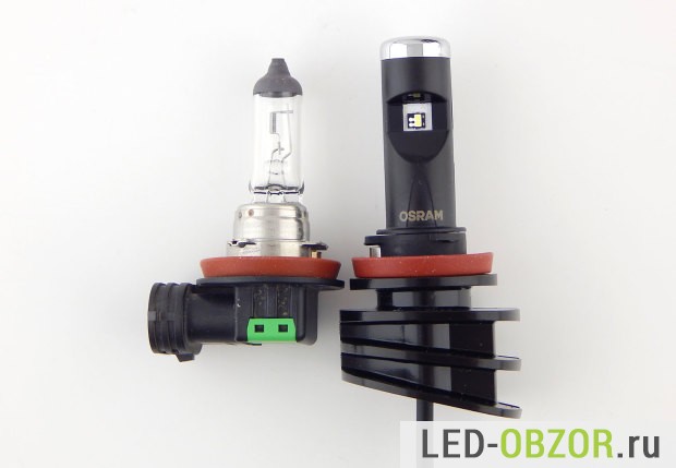 Конструктивно светодиодные лампы выполнены для эксплуатации в условиях влаги и пыли. Отсутствуют элементы активного охлаждения, такие как вентиляторы. Размеры немного превышают габариты галогенки. Осрам H11 создают освещенность на дороге точно такую же, как штатный галоген. Потребление энергии у них ниже в 5 раз по сравнению со стандартной галогенкой на 55вт.