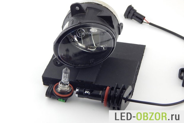 Протестируем в штатной противотуманной фаре от автомобиля. В ближний и дальний свет устанавливать нельзя из-за низкой яркости. После установки Осрам H11 в ПТФ видно, что она светит гораздо выше. Светотеневая граница нечеткая и она не совпадает с галогеновой. Необходима регулировка противотуманок, иначе они будут слепить встречные автомобили.