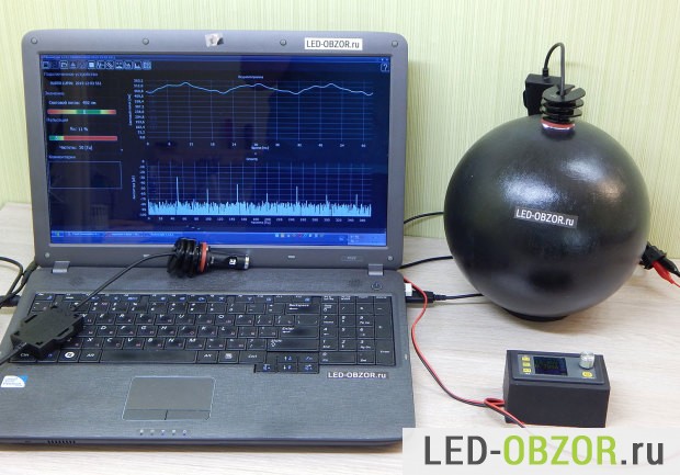 Сначала замеряем световой поток на холодной автолампе, затем через 60 минут после включения. За это время она прогреется до рабочей температуры. После первого замера подумал что слетела калибровка, результат очень низкий. Проверил калибровку эталонами, фотометрический шар показывает правильные результаты. Сравнил визуально, по сравнению с другими лампочкам на 11 ватт на Cree XM-L2 светит слабовато.