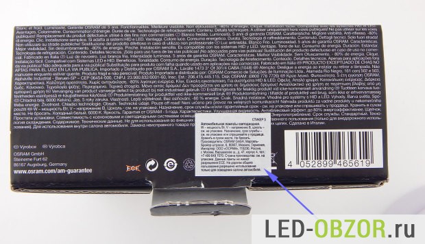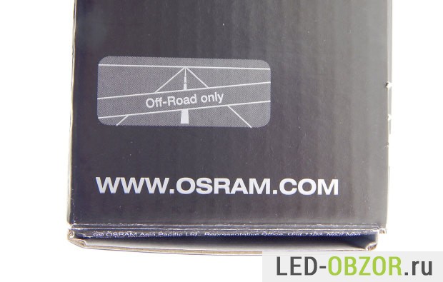 На упаковку нанесён стикер, который сообщает, что данные светодиодные лампы для противотуманок не имеют разрешения на эксплуатацию на дорогах общего пользования. Использовать можно только для освещения салона автомобиля. На другой стороне указано «Off-road only», только для бездорожья.
