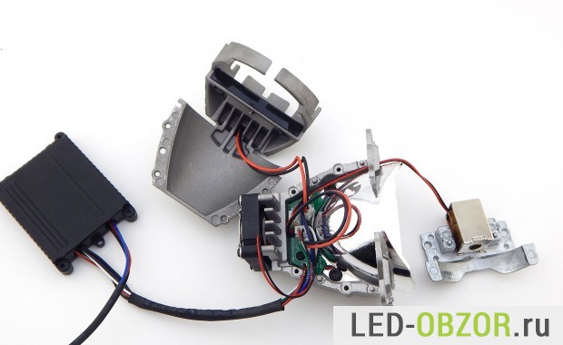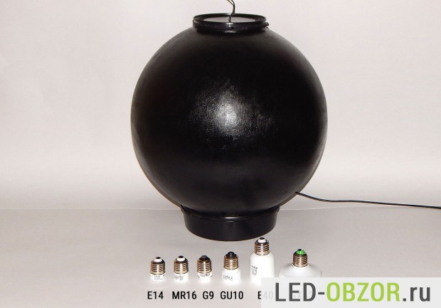 Светопоток замеряется в фотометрической сфере, билинза полностью разбирается, остаётся только светодиод с радиатором. Часть света теряется на отражателе и при прохождении через прозрачный пластик.