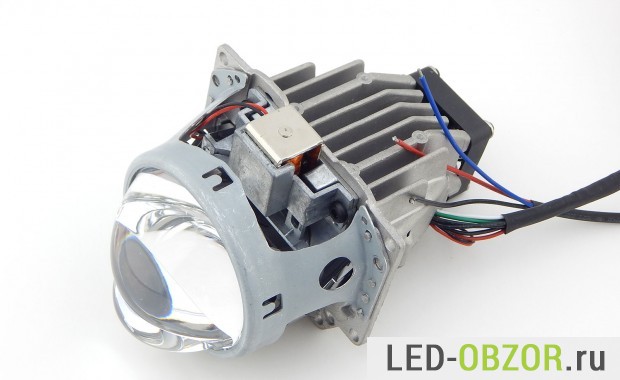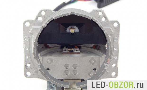 Отличительная особенность данного Bi Led модуля, при включении дальнего света включается дополнительный светодиод, который стоит в малой секции. У обычных bi led модулей мощность одинаковая в обеих режимах, энергопотребление возрастает примерно на 10W за счёт включения шторки.