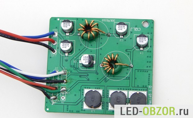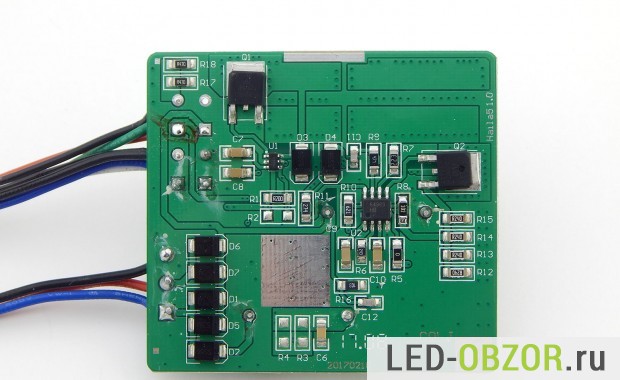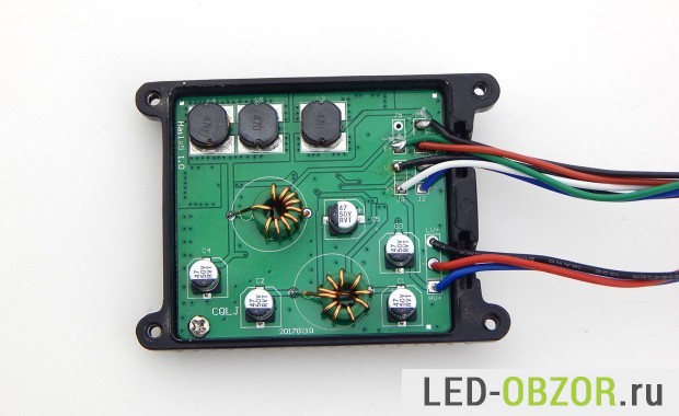 Плата с электронными компонентами внутри драйвера оказалась без компаунда, такое встречаю очень редко. Для увеличения срока службы блока питания плату заливают компаундом или герметиком, который защищает от влаги и конденсата. К тому же между двумя частями корпуса нет уплотнителя, поэтому влага сможет проникать внутрь корпуса, что сократит срок службы.