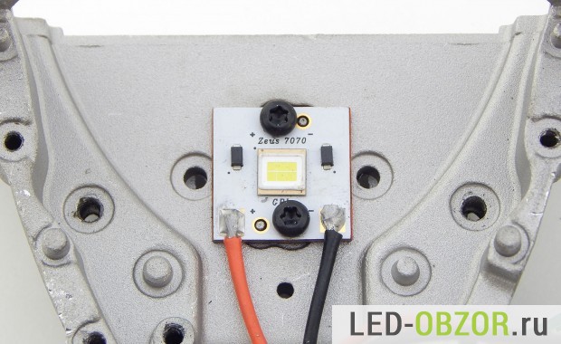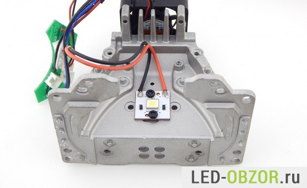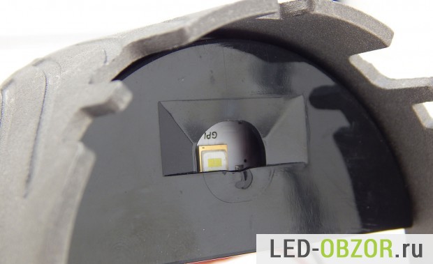 Перед замером светового потока прогреваем светодиодную линзу в режиме ближнего света в течение 60 минут до рабочих характеристик. В результате нагрева кристалла светодиода светопоток снизится. В данной модели установлен популярный бюджетный светодиод Zeus 7070, который используют в качестве замены диодов LG.