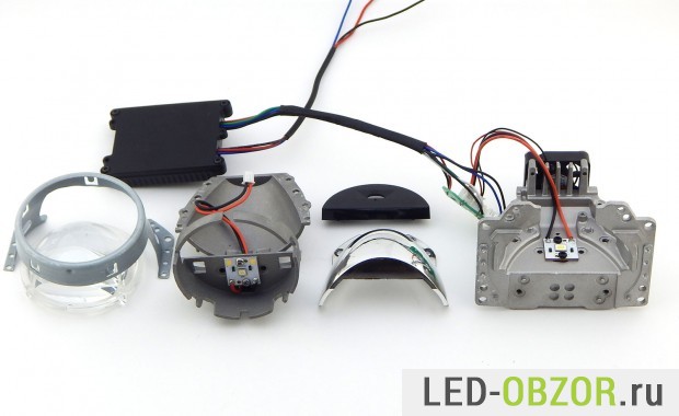 Светодиодные линзы в отличие от ксеноновых имеют встроенный светодиод большой мощности, переключение ближнего и дальнего света происходит за счёт опускающейся шторки. Общепринятое название «светодиодные линзы», но есть и множество других синонимов, которые вы можете использовать для поиска обзоров в рунете и зарубежом: bi led линзы и модули, лед билинзы, би лед.