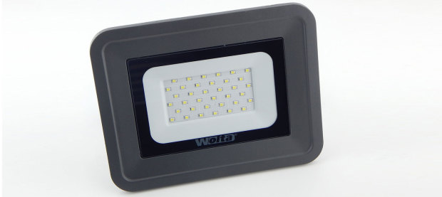 Уличный светодиодный прожектор на 30 Ватт предоставлен компанией Wolta, Вольта. Бренд ещё не очень популярен в России, но привлекает покупателей доступными ценами и хорошим качеством.