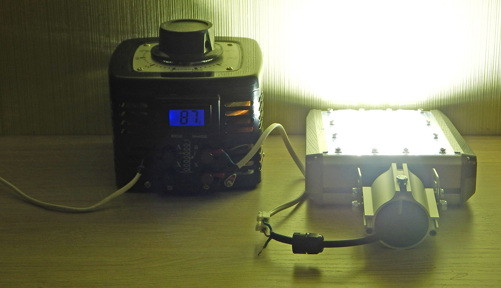 Данная модель работает при напряжении 90 вольт не снижая уровень светового потока уличного светильника. Измерения проходили с использованием лабораторного блока питания.