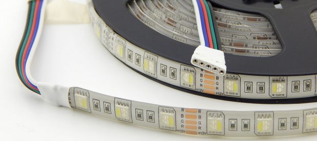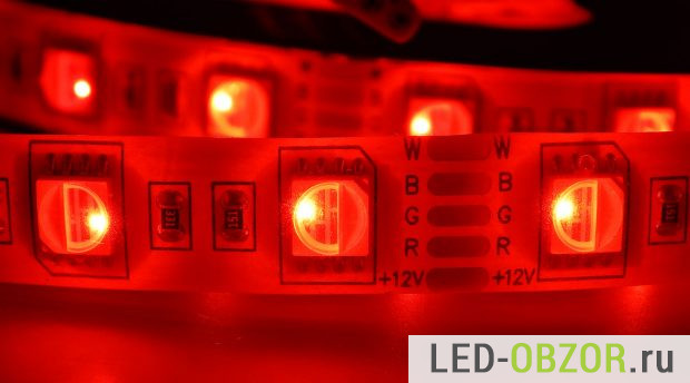 Технические параметры зависят от установленных светодиодов, которые выполнены в формате корпуса SMD 5050. Особенностью является конструкция, которая состоит из трёх цветов и отдельной секции белого света, обозначается RGBW. Это будет самым правильным решением если кроме цветной LED подсветки необходим белый свет. При смешивании трёх RGB цветов получается белый свет, но он очень неоднородный с разными оттенками синего, красного, зелёного. Для нормального освещения он не подходит и его нельзя использовать для освещения рабочего места или чтения.