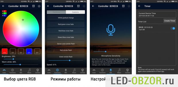 - встроенный плеер позволит использовать для цветомузыки файлы с вашего смартфона;
