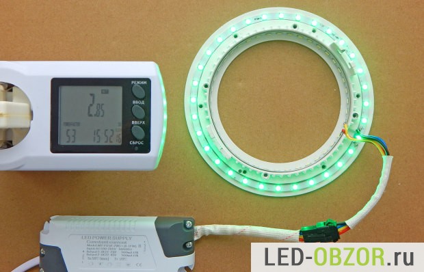 Энергопотребление зеленой подсветки вместе с драйвером составило 2,85W. Мощность диодов без источника тока 1,85W. Из 2,85W — 1,85W = 1W идет на нагрев источника питания.