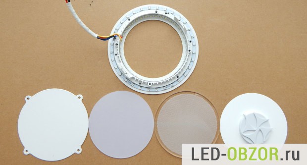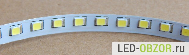 Основной режим работы обеспечивают 60 светодиодов SMD 2835 расположенных на алюминиевой линейке. В идеале светодиодная линейка должна плотно прилегать к корпусу для хорошего отвода тепла. В нашем случае на основание линейки нанесен состав, типа самоклейки, для приклеивания. Но чтобы круг плотно прилегал, его необходимо идеально согнуть, а сделать это практически невозможно.Несмотря на то, что есть клеящий состав, алюминиевая полоска не прилегает плотно к корпусу, только местами.