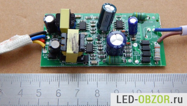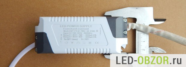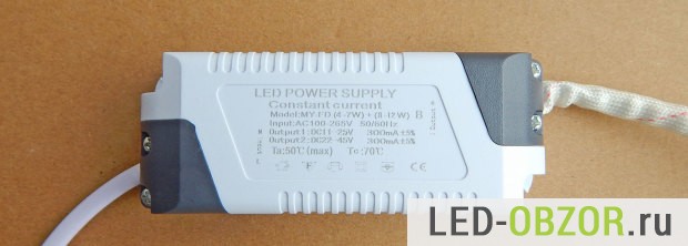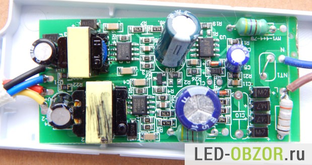 Источник тока для питания светодиодов называется драйвер. У этого светильника он высокого качества, по корпусу видно что сделан добротно, никаких щелей или косяков сборки. Внутри находятся два драйвера, собранных на одной плате, отдельно для основного и отдельно для дополнительного зеленого. Такой же блок , но с более высоким током используется в потолочных светодиодных светильниках Армстронг от компании Сибертек, которые недавно получил для обзора и тестирования. Такой Armstrong стоит от 3500 руб за штуку и относится к классу высококачественных. Естественно, на дорогое изделие не будут ставить бюджетный блок питания.