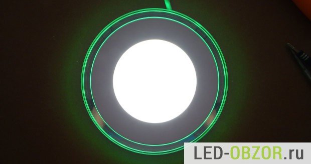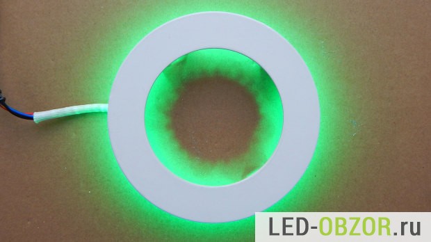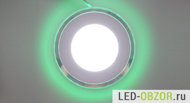 Для наглядной демонстрации внешнего вида светильника для подвесных и натяжных потолков, сделал фото в различных режимах, при разном освещении, при разном фоне. В темноте сбоку смотрится, как будто НЛО на посадку заходит, мигая зелеными новогодними огнями.