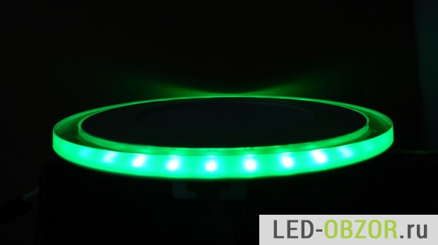 Диодный светильник для дома LY-115 представлен в двух вариантах, с синей и зеленой подсветкой, у меня оказалась зеленая. Первое что бросается в глаза, выглядит симпатично, а не просто круг с матовым пластиком. В нём удачно сочетаются: