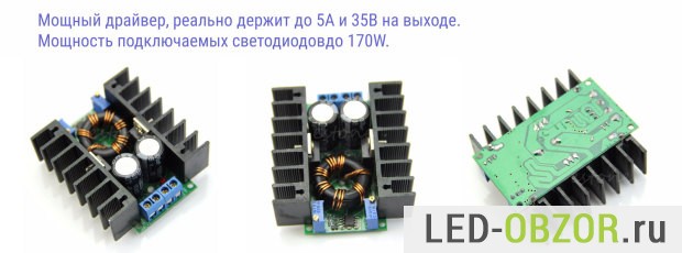 Не всем хочется тратить большую денежку на покупку готового прожектора для авто, светодиодного светильника или заказывать готовый драйвер. Поэтому обращаются ко мне, что бы из подручных комплектующих собрать что-нибудь приличное. Цена таких модулей начинается от 50руб до 300руб за модель на 5А с радиатором. Покупаю заранее по несколько штук, расходятся быстро.