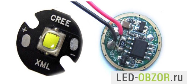 Источник питания для светодиодов может быть и простой пальчиковой батарейкой на 1,5В. Для LED диода требуется обычно минимум 3V, без стабилизатора тут никак не обойтись. Такие специализированные светодиодные драйвера используются в ручных фонариках на Cree Q5 и Cree XML T6. Миниатюрная микросхема повышает количество вольт до 3V и стабилизирует 700мА. Включение от 1.5 вольт при помощи токоограничивающего сопротивления невозможно. Если применить две батареи на 1.5 вольт, соединив их последовательно, получим 3В. Но батарейки достаточно быстро разряжаются, а яркость будет падать еще быстрее. При 2,5В емкости в батареях останется еще много, но диод уже практически потухнет. А светодиодный драйвер будет поддерживать номинальную яркость даже при 1В.