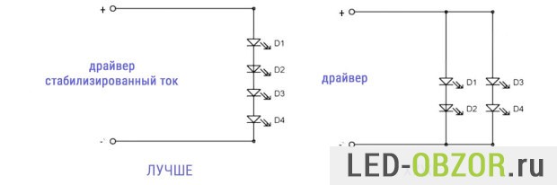 - снижение напряжения на одном LED;