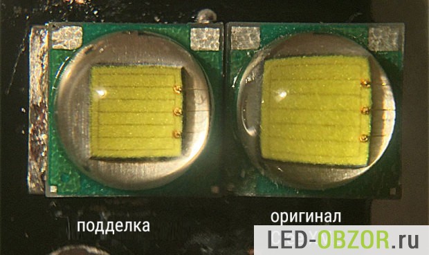 Глобальная проблема, это подделка светодиодов Cree и Philips в промышленных масштабах. У китайцев для этого есть целые предприятия, внешне копируют на 95-99%, простому покупателю отличить невозможно. Самое плохое, когда такую подделку вам продают под видом оригинального Cree T6. Вы будете подключать поддельный по техническим спецификациям оригинального. Подделка имеет характеристики в среднем на 30% хуже. Меньше световой поток, ниже максимальная рабочая температура, ниже энергопотребление. Про обман вы узнаете очень не скоро, он проработает примерно в 5-10 раз меньше настоящего, особенно на двойном токе.