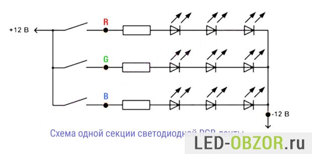 Получаю множество вопросов от читателей, как сделать правильное подключение светодиодов к 12 вольт и к сети 220В. Обычно только знают, что схема подключения светодиодов может быть параллельной или последовательной. Но диоды бывают не только одноцветные, но и трёхцветные RGB и четырехцветные RGBW. Для управления ими требуется RGB контроллер.
