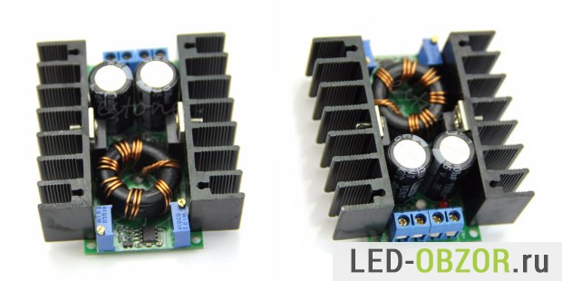 На мой взгляд, самый лучший из всех повышающих стабилизаторов. У некоторых бывает элементы не имеют запаса по характеристикам или они ниже чем у ШИМ микросхем, из-за чего они не могут дать и половины обещанного тока. У Tusotek на входе стоит конденсатор 1000мФ 35V, на выходе 470мФ 63V. Теплоотводной стороной с металлической пластиной они припаяны к плате. Но припаяны плохо и косо, на плате лежит только один край, под другим щель. Без разбора не понятно, насколько хорошо они запаяны. Если совсем плохо, то лучше их демонтировать и поставить этой стороной на радиатор, охлаждение улучшится в 2 раза.