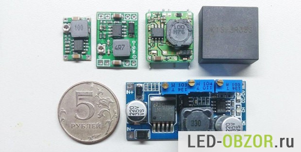 Представитель современных эффективных преобразователей, как и устаревшие модели на LM2596 выпускается с нескольких вариантах, от миниатюрных до моделей с индикаторами напряжения.