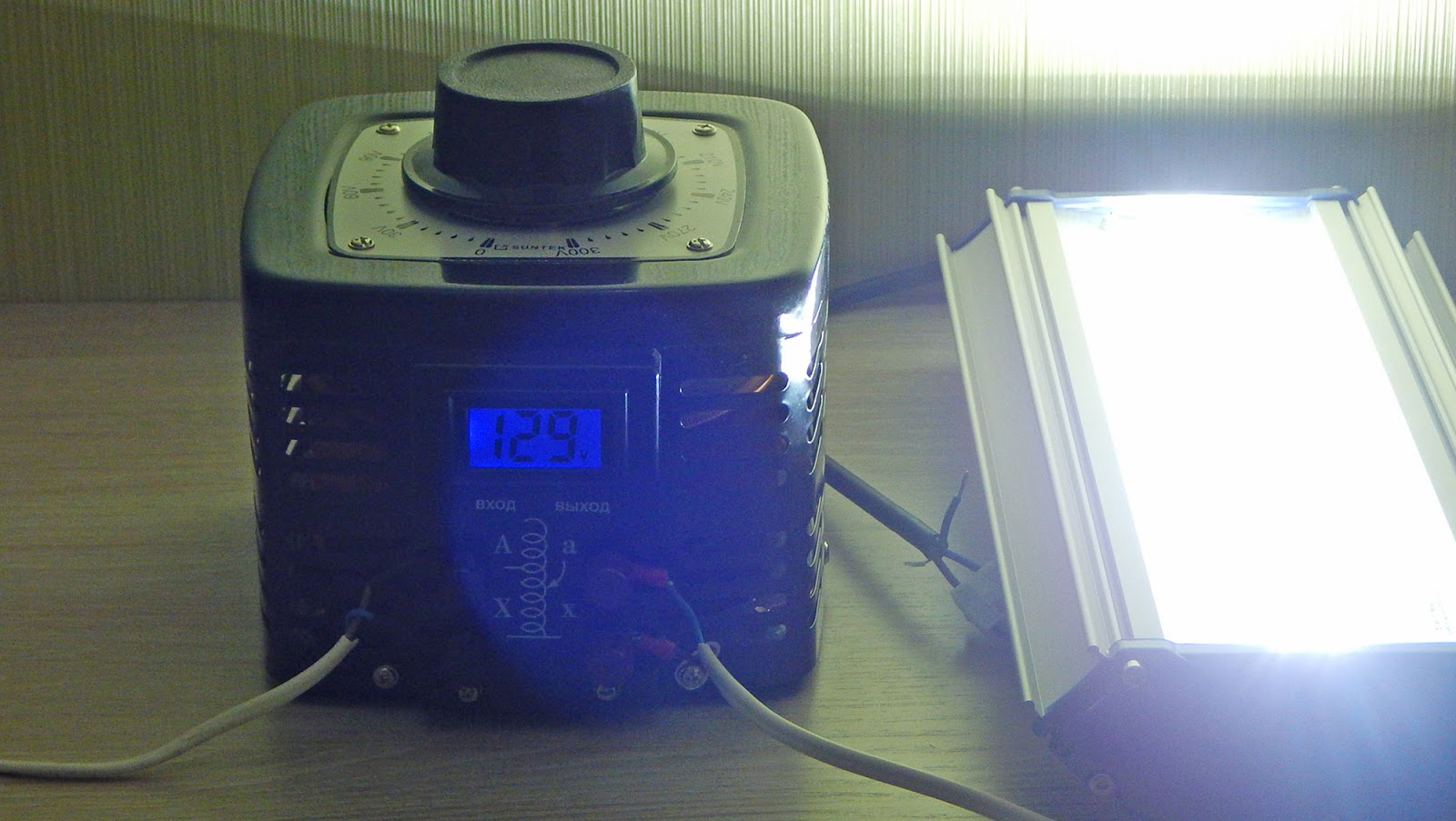 Минимальное рабочее напряжение без снижения яркости получилось 129 Вольт.