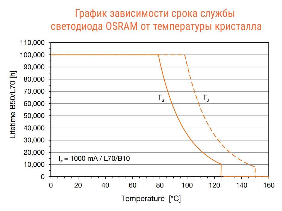 При низкой температуре (например -5 градусов) на улице или помещении температура led диодов и корпуса снизится. Снижение примерно будет равно разнице текущей температуры воздуха и лабораторным показателем в 22 градуса. Соответственно снижение будет на 27°.
