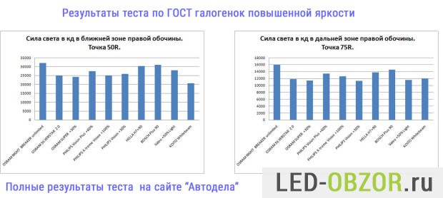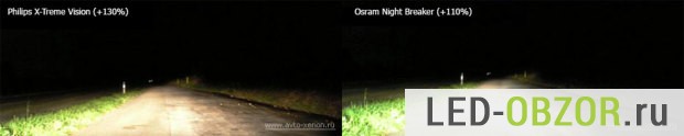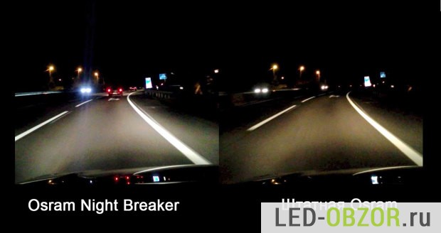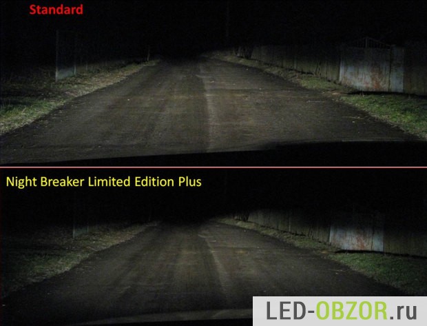 Заметил такую особенность, что на фотографиях сравнения лампы повышенной яркости часто впереди находится еще один автомобиль. Который визуально удлиняет зону освещения дороги своим ближним или дальним.