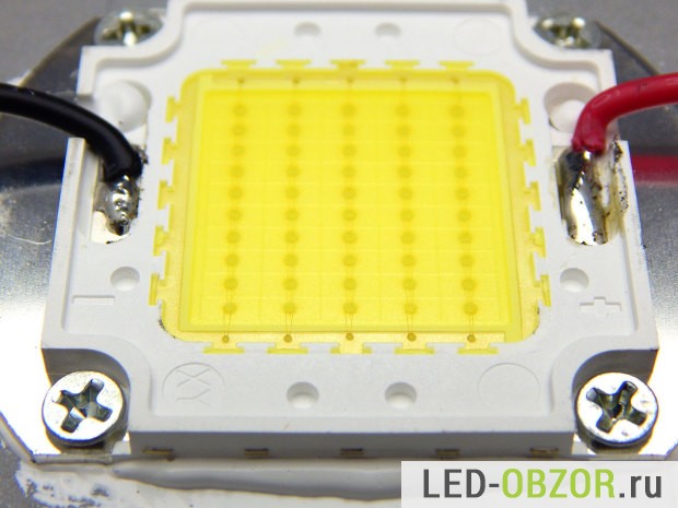 - 49W * 0,9 (КПД драйвера) = 44W мощность на светодиодной матрице;
