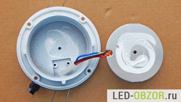 После снятия пластины стало видно, что термопасты намазано много, но она не соприкасается с корпусом светодиодного потолочного светильника. Лишь 30% белой пасты имеет следы размазывания, остальная ровненькая. Из всей площади пластины контакт получается примерно на 20%, а остальная висит в воздухе. Как же так?
