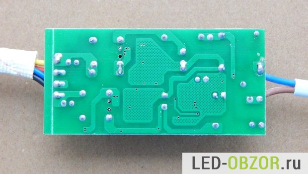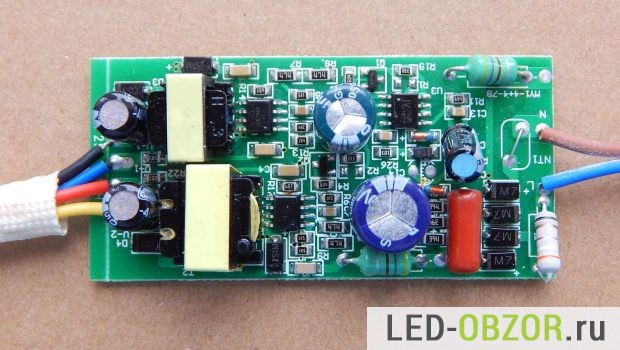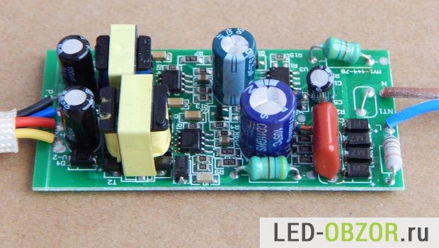 Из-за наличия в потолочном диодном светильнике двух отдельных секций, драйвер состоит из двух источников тока на одной плате.