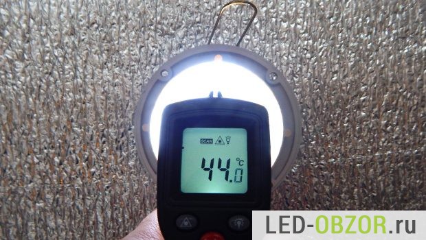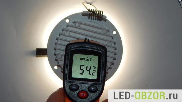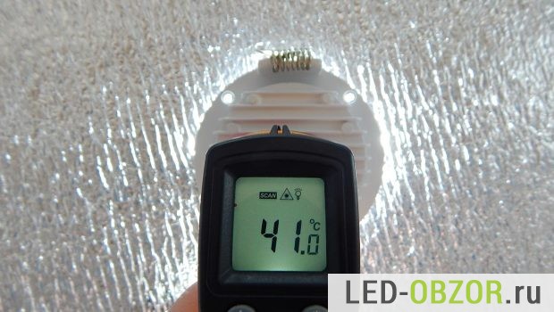 Как мы видим из полученных результатов, температура корпуса и пластинки со светодиодами отличается на 2-3 градуса, практически равны. Из- этого делаем выводы, что даже при малом пятне контакта между ними не наступает перегрев LED элементов. Значит изделие будет работать долго, и не скончается преждевременно.
