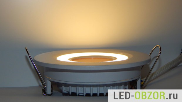Особенностью этой модели лед светильника потолочного является наличие декоративной подсветки теплого белого света. Для многих сложно выбрать цветовую температуру для дома, за многие годы привыкли к лампам «внутреннего сгорания». Им подойдет комбинированный вариант, основной нейтрально белый, дополнительный теплый.