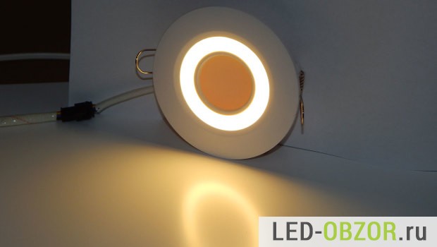 Если у вас стояли галогенки на 12V или другое простое освещение, то у вас проложено только 2 провода. Для функционирования этой модели врезного потолочного диодного светильника на 220 Вольт не требуется прокладывать третий провод и ставить включатель на стене на 2 секции, для отдельного включения освещения и подсветки.