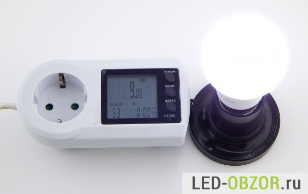Перед измерениями образцы прогреваются в течение 60 минут. За счёт нагрева вольтамперные характеристики светодиодов меняются, мощность немного снижается. Результат в 9W точно соответствует обещанному потреблению энергии.