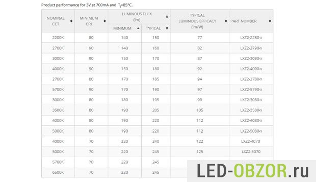 Из таблицы видим, что световой поток в люменах для 1 led Philips ZES может быть от 140 до 245 Люмен.Но это не означает что будут использоваться самые яркие на 245лм.