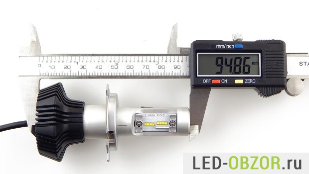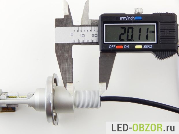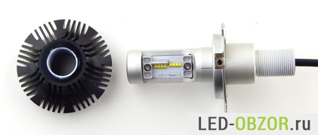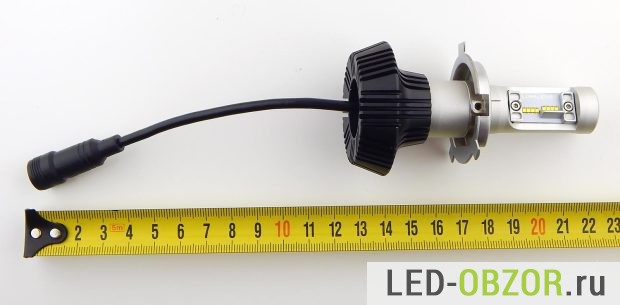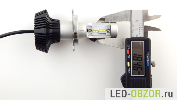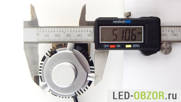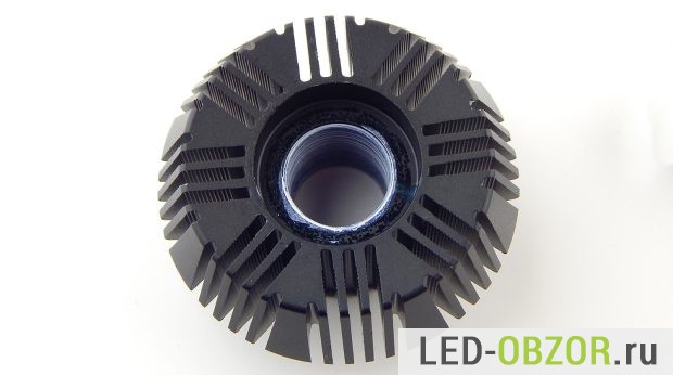 Размеры радиатора достаточно малы при высокой мощности. Предполагаю, что светодиоды будут работать на пределе своих температурных возможностей. Длина зависит от положения рассеивателя тепла, который накручивается на конец. Широкой часть он может быть внутрь или наружу. При размещении внутрь длина уменьшается на 6,5 мм., что повышает удобство установки и закрытие фары крышкой для герметизации.