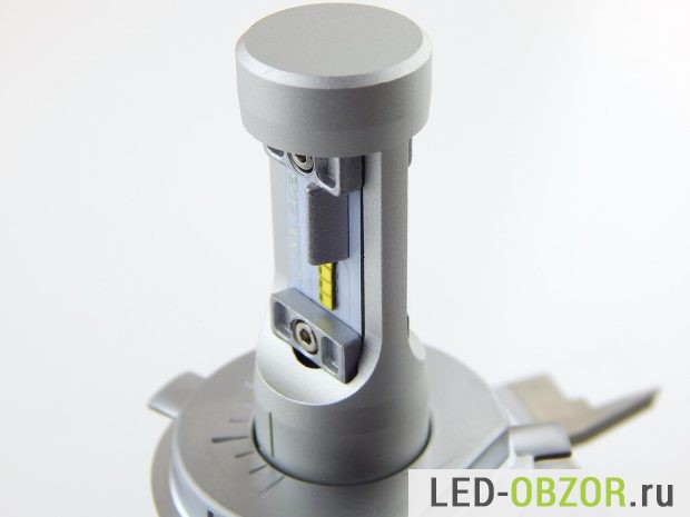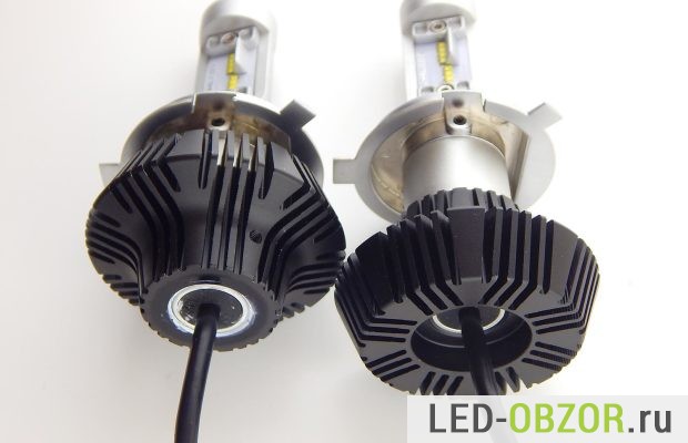 Светодиодные лампы H4 для головного света объединяют в себе ближний и дальний свет. Работают только по отдельности, вместе не включаются. Отсутствие вентилятора повышает надежность изделия, но снижает срок службы.