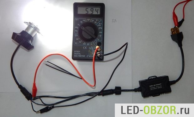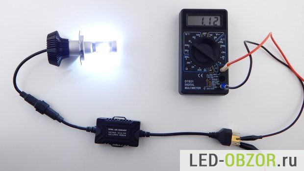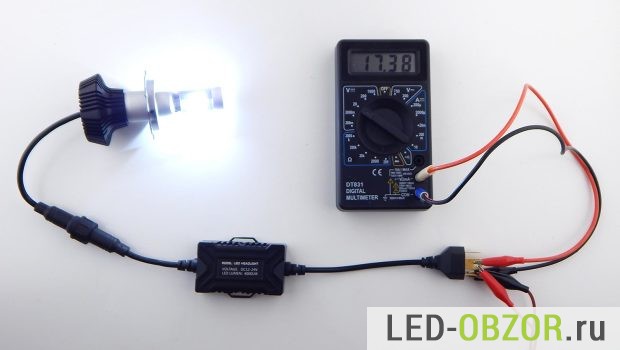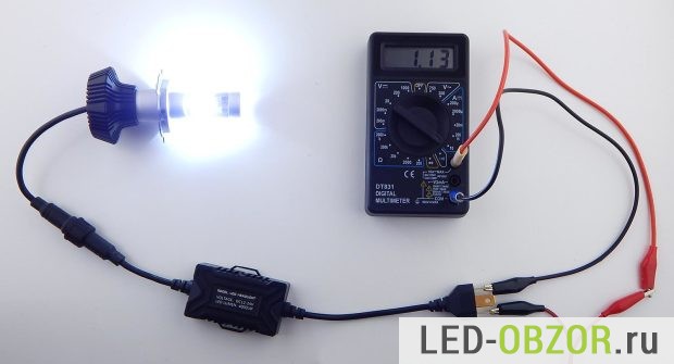 В качестве источника питания для автомобильных светодиодных ламп H4 используется блок питания от ноутбука на 4,7 Ампера. Для вычисления мощности замерим напряжение и силу тока: