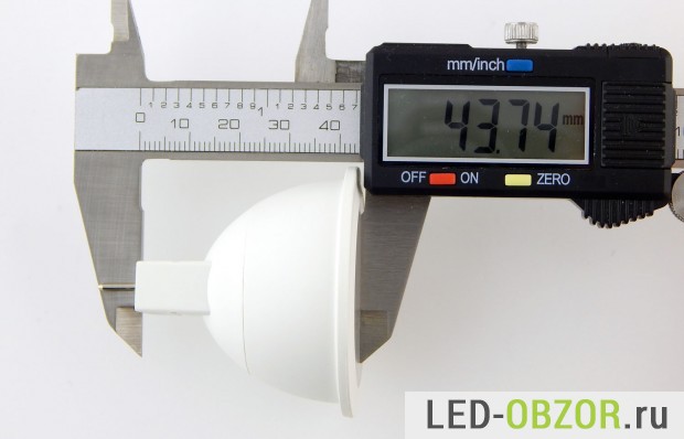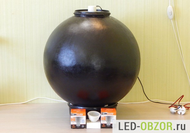 Измерение светового потока проводим в фотометрической сфере диаметром 40см. Предварительно греем образец 30 минут до рабочих показателей. При повышении температуры светодиодов светопоток светодиодной лампы GU5.3 снижается.