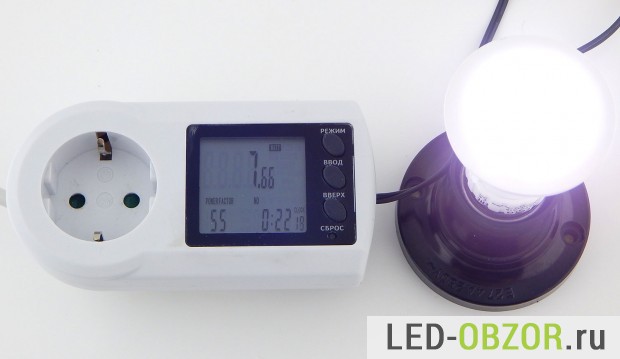 Перед проведением замером прогреваем образец в течение 30 минут до рабочей температуры. Для светодиодных ламп GU 5.3 мощность 8 ватт является максимально допустимой. Показатель 7,66W ниже заявленного, но при этом световой поток выше обещанного. Это является большим плюсом, у современных светодиодных ламп GU 5.3 такое встречается редко.
