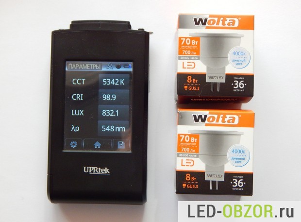 Измерение цветовой температуры и индекса цветопередачи проводим спектрометром UPRtek MK350. Недавно написал полный обзор спектрометра UPRtek MK350 с примерами измерений источников света начиная от свечки, до ксенона, галогена, прожекторов и светильников.