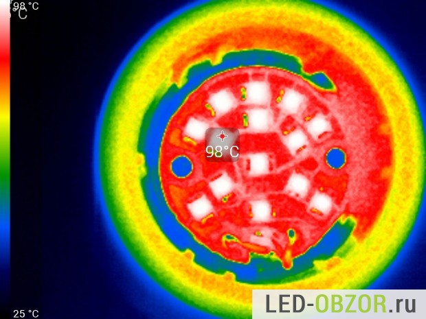 Лампочка прогревается в течение 60 минут до рабочих характеристик. Современные светодиоды для домашнего освещение по спецификациям могут нагреваться до 110°, сохраняя заявленные параметры. Корпус греется до 100°, это нормально и не является признаком плохого качества, как многие думают.