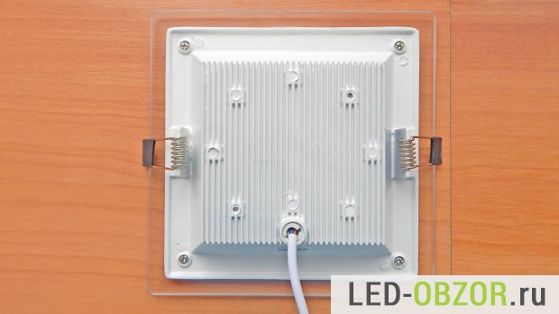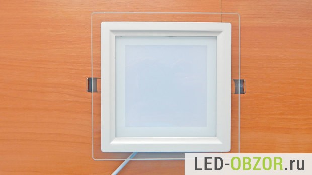 Сейчас в моде на 2015 год сильно матовые стекла, чтобы не было видно точек от светодиодов. При встраивании в натяжной потолок стекло сливается с поверхностью потолка и выделяется только рамка вокруг.