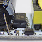 Конечно же я оценил начинку диодного драйвера, оценив сборку и элементную базу. Сборка очень качественная, в отличие от многих других, используется двухслойная печатная плата. Дорожки есть с каждой стороны и соединяются металлизированными отверстиями. За счет этого он получается максимально компактный. Такое конструктивное исполнение говорит о высоком качестве и использовании отличного оборудования у производителя.