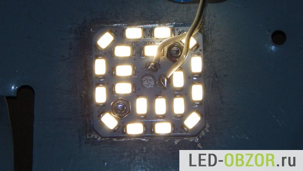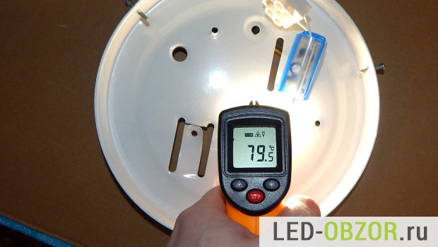 Светодиодный накладной светильник включаем на 30 минут в открытом виде без крышки. Желательно чтобы нагрев не превышал 80°, в светодиодной лампе для дома модуль грелся до 95°. Так как изделие бюджетное, то качественные леды они туда точно не поставили, которые могут длительно работать при таком нагреве.
